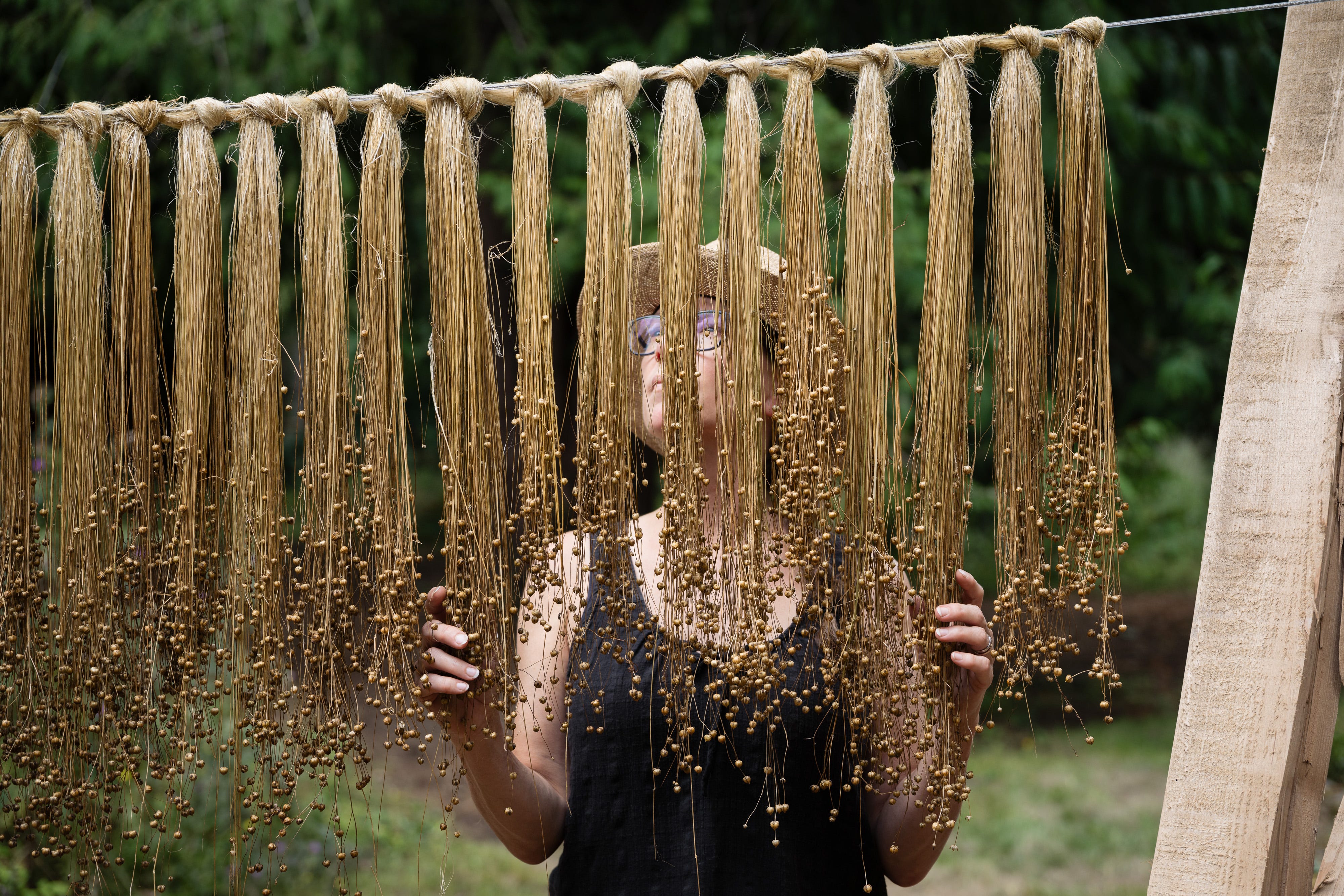 A flax art installation, classes, and magic beans
