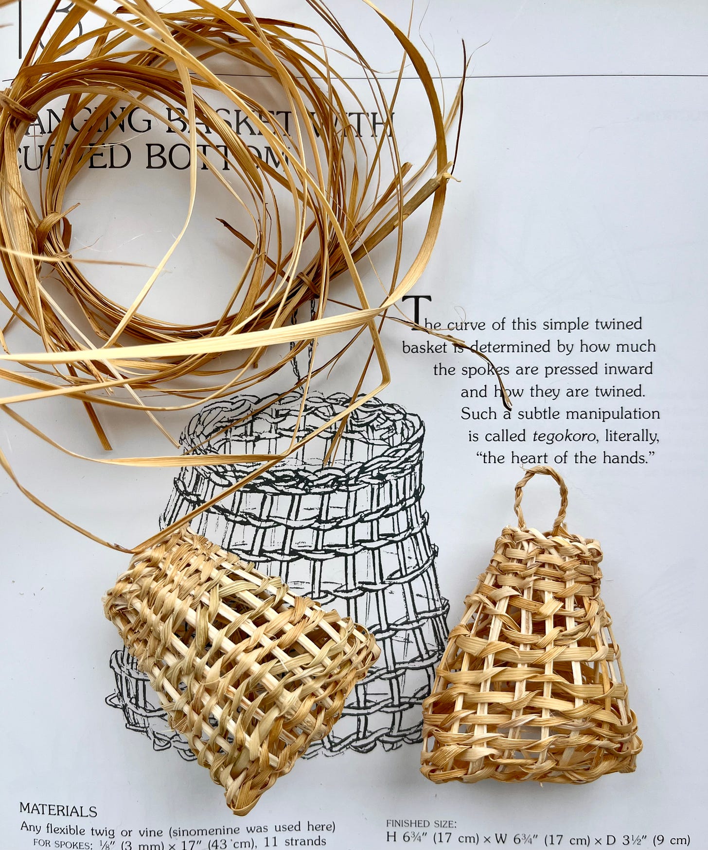 This basket was found in the (out of print) book “Basketry: Projects from Baskets the Grass Slippers” by Hisako Sekijima (1986). If you are not familiar with her work, take a look here. I reached out to Hisako directly and was thrilled when she replied, giving me permission to teach this method from her book! She added:
